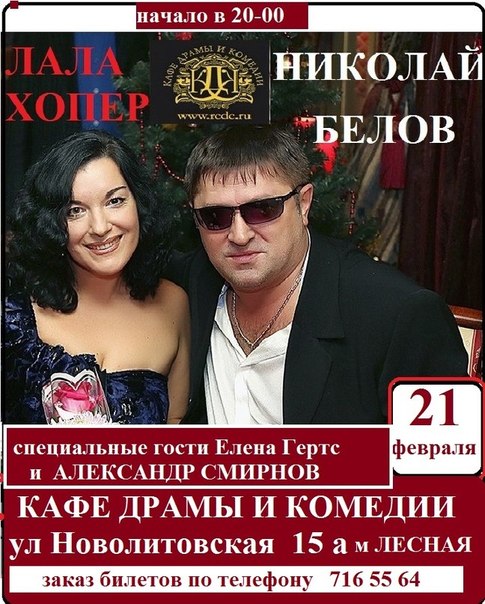 Дорогие друзья!!! 8 ноября в «Кафе Драмы и Комедии» встретятся две питерские группы «Смирнов и К» и группа «Кафе». Мы ждем Вас!!! Более подробная информация: В официальной группе Вконтактена сайте группы.